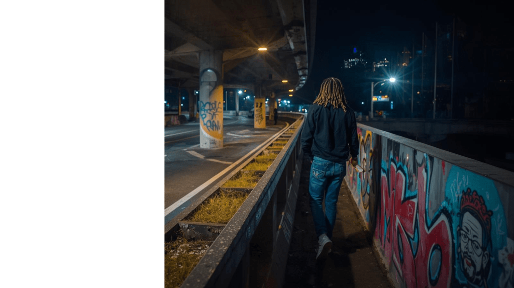 »Ein Graffiti zu sprayen, ist ein wunderbares Verbrechen. Es gibt kein Besseres: Man lebt seine Kreativität aus, begeht einen rebellischen Akt gegen den unterdrückerischen Kontrollstaat und tut dabei keinem weh«, behauptet Osaro. Als sie widersprechen will, fügt er hinzu: »Das bisschen neue Farbe für die Wand kostet nicht die Welt, davon wird hier niemand arm.«