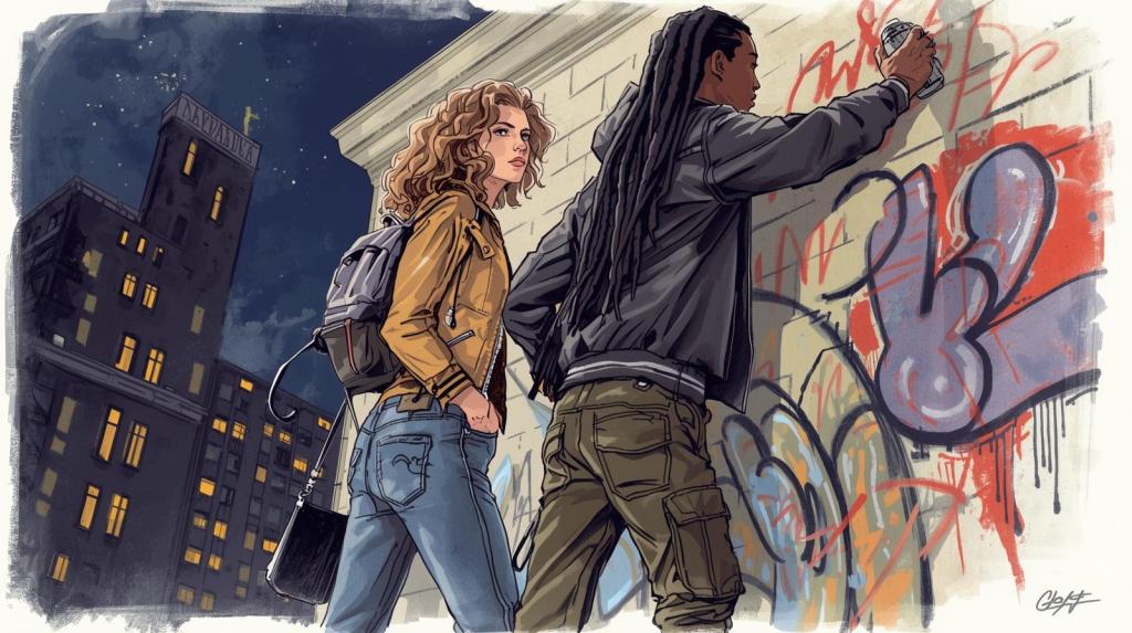 Es ist ihr egal, dass er sie einen Feigling nennt. Allerhöchstens ist sie ein ganz kleines bisschen neugierig aufs Graffiti-Sprayen.